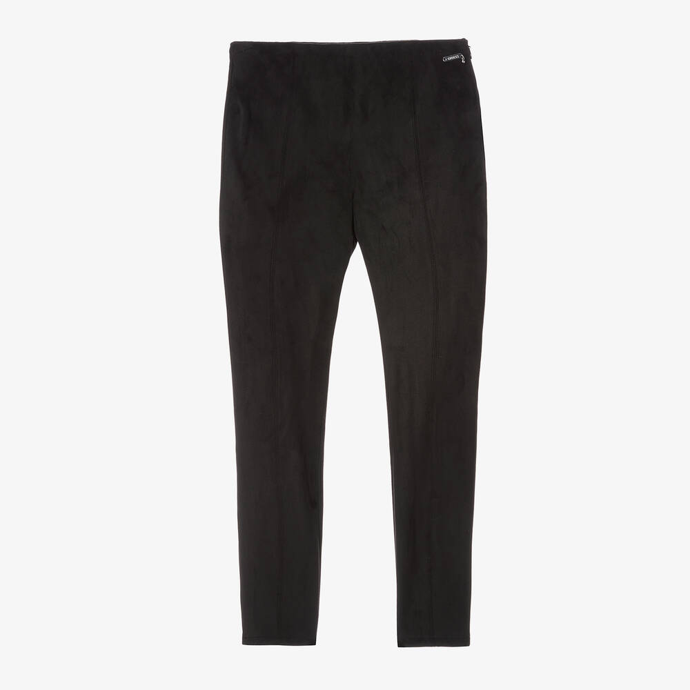 Girls black faux suede leggings by Guess. They have a super soft feel and tapered legs, with an elasticated waistband. There is a zip at the side to fasten and a stitched silver logo plate