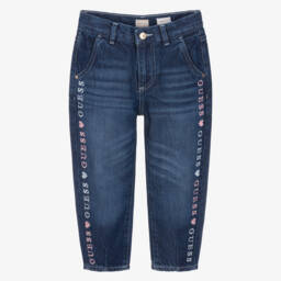Dark blue jeans for younger boys by Guess, made in soft denim with a slight stretch for comfort. Cool and casual, these straight fit jeans have classic five-pocket styling and a washed and worn look. They fasten with a popper and zip and have an adjustable waist for a comfortable fit. The brand's iconic Triangle logo patch can be seen on the back for a signature finish.