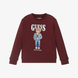 Cute pink cotton sweatshirt for younger girls by Guess, patterned with contrasting pink hearts and logos. Made in soft, comfortable jersey, it has the brand's signature Triangle logo with 'love' printed across it in glittery silver. This product contains organic fibres.