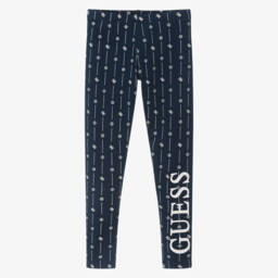 Reversible pink cotton leggings for younger girls by Guess, made in soft, comfortable jersey. Full length, one side is patterned with cute, contrasting pink hearts and logos, whilst the other is plain pink. Both sides have a shiny silver logo on one ankle. This product contains organic fibres.