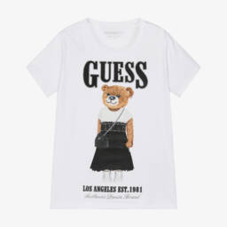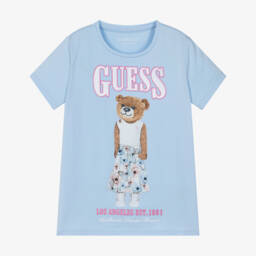 This navy blue T-shirt for junior girls by Guess adds a stylish touch to any casual outfit. Made from soft cotton jersey, it showcases a fashionable bear motif on the front, complemented by the brand’s distinctive logo in a mix of appliqué and delicate embroidery.