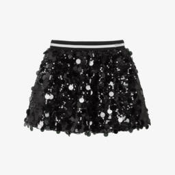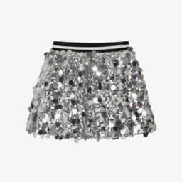 Lovely for a party, this silver skirt for junior girls by Guess is adorned with an array of shiny sequins that catch the light beautifully. Lined in lightweight crêpe, it has an elasticated striped waistband for comfort and easy pull on, with a metal logo adding a signature finish.