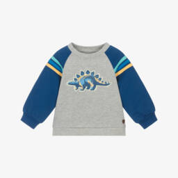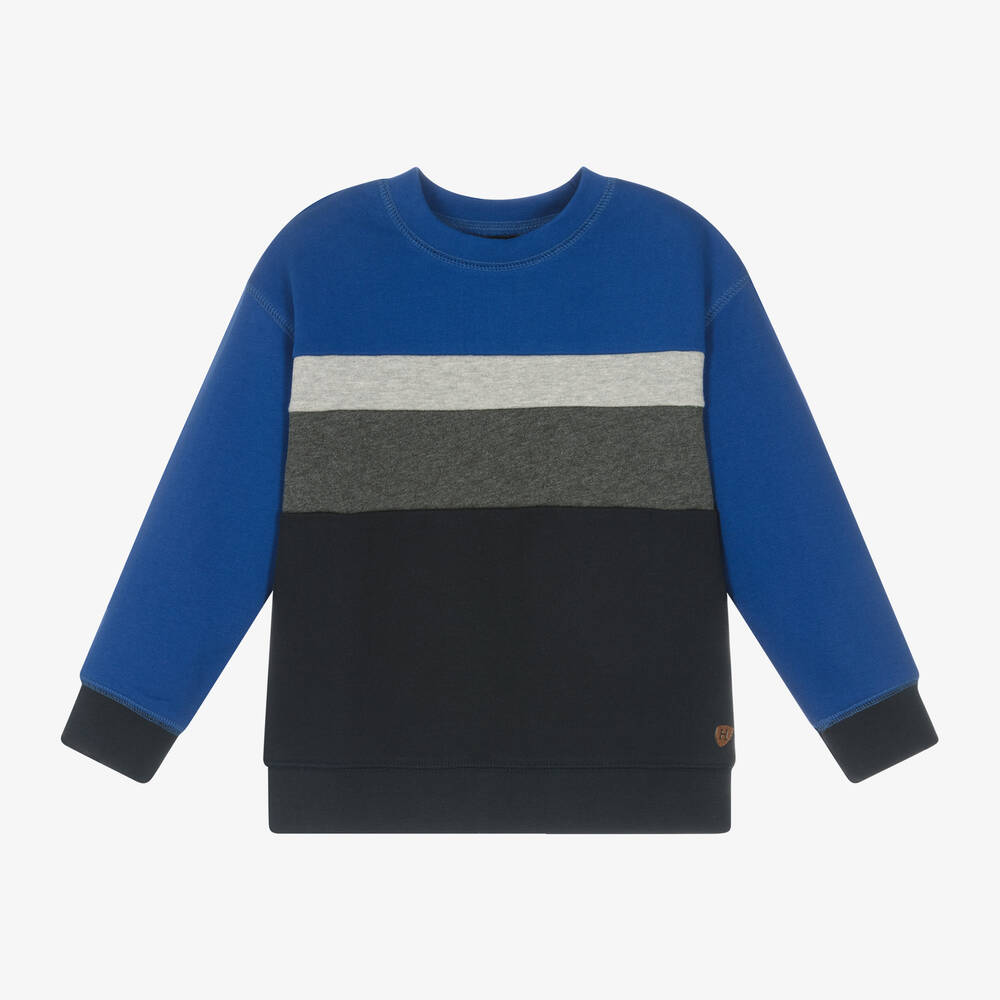 In a blue and grey colourblock design, this cotton sweatshirt for boys is by Hatley. Made in soft and comfortable cotton jersey this long sleeved top has stretchy ribbed trims and a casual crew neckline. There is a small logo stitched on the front for a subtle designer finish.