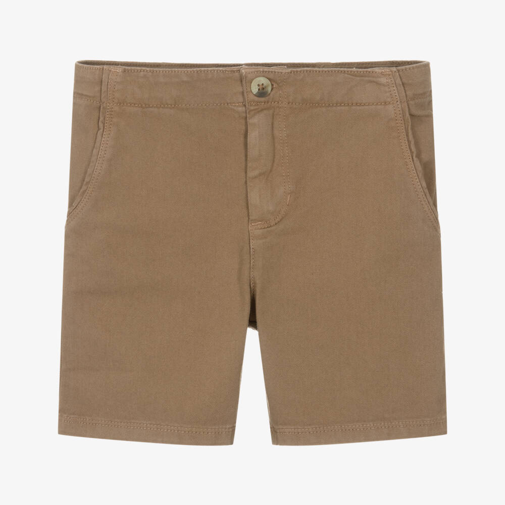 Boys Dark Beige Cotton Twill Shorts