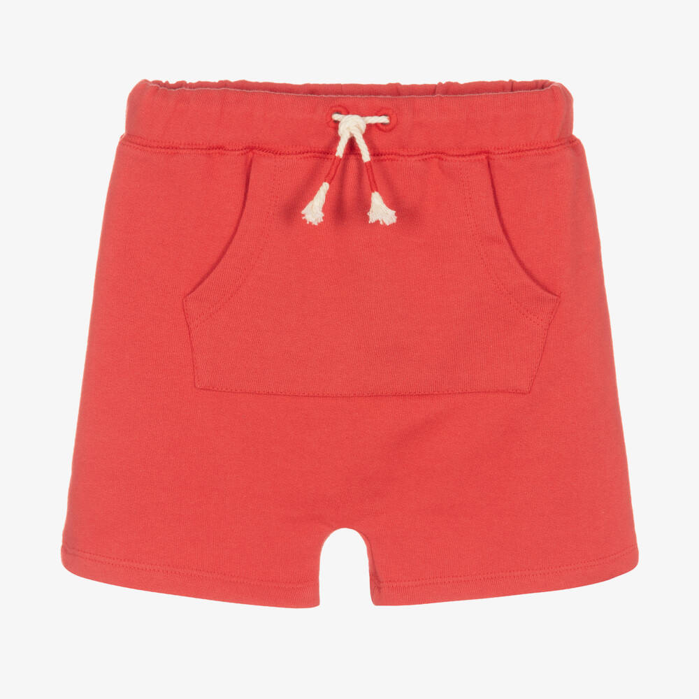 Boys red cotton kanga shorts by Hatley. Made in mid-weight sweatshirt jersey, they have an adjustable drawstring waist and front pouch pocket.
