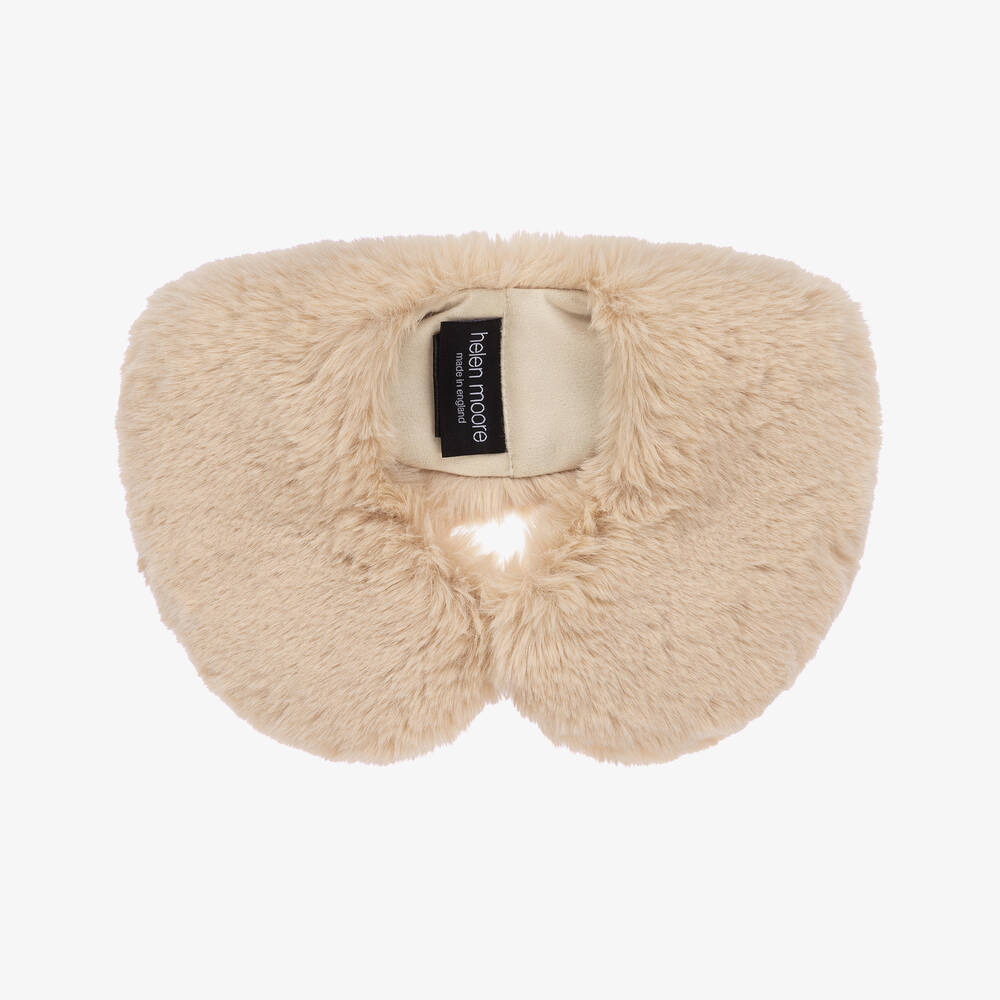 Super soft beige faux fur Peter Pan collar for girls by Helen Moore. A cosy accessory ideal for the colder months, it fastens with a pearly grey button on the front and has smooth and velvety plush lining.