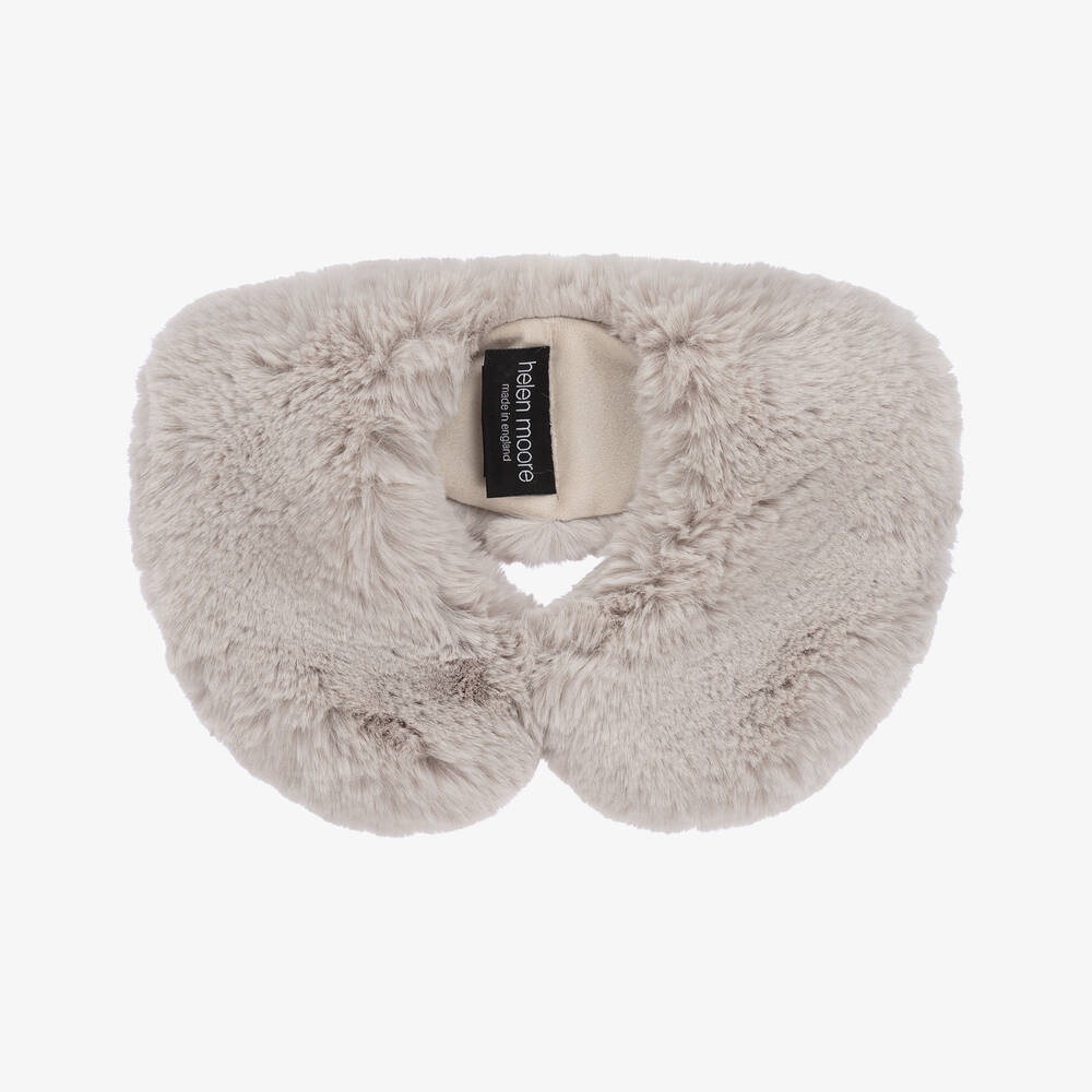 Super soft pale grey faux fur Peter Pan collar for girls by Helen Moore. A cosy accessory ideal for the colder months, it fastens with a pearly grey button on the front and has smooth and velvety plush lining.