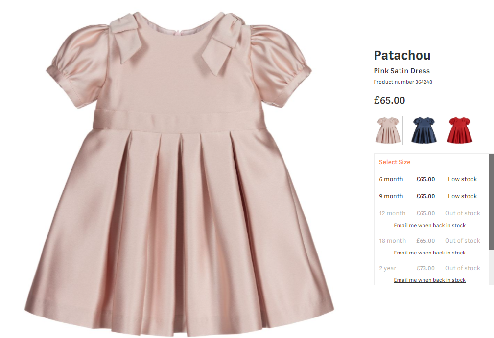 Customers with a Childrensalon account can also sign up to the waiting list for a product - simply select your size and click 'Email me when back in stock'. If it becomes available, you will receive an email from us. Kindly note that this option is not available for all products or any sale items.