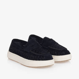 Navy blue loafers for boys by House of Cavani. In a stylish woven design, these slip-on shoes are made from faux suede leather. They have a lightly padded faux leather insole for added comfort and a thick ivory non-slip rubber outsole for good grip.