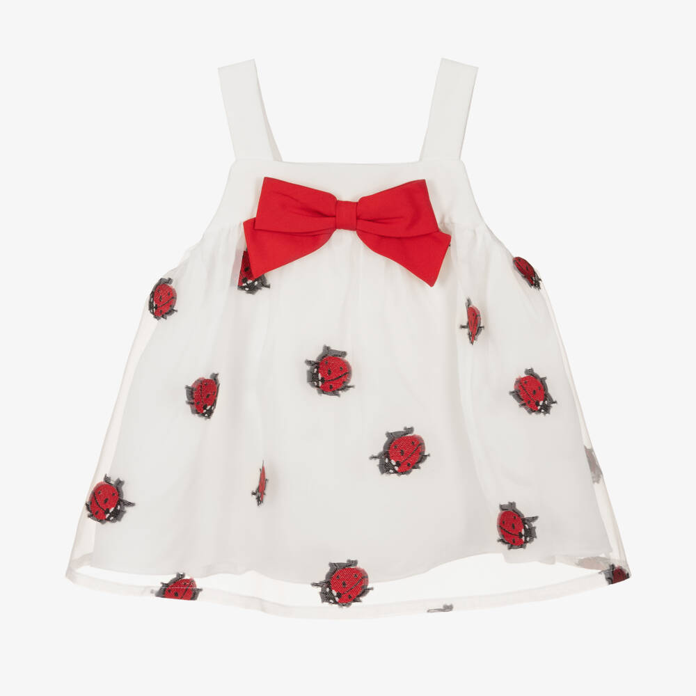 Girls White Organza Ladybird Blouse