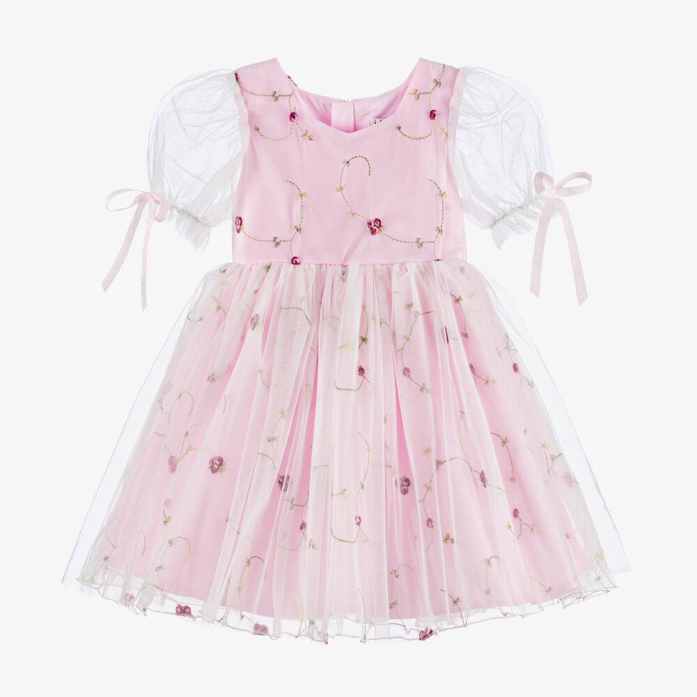 Girls Pink Embroidered Tulle Dress