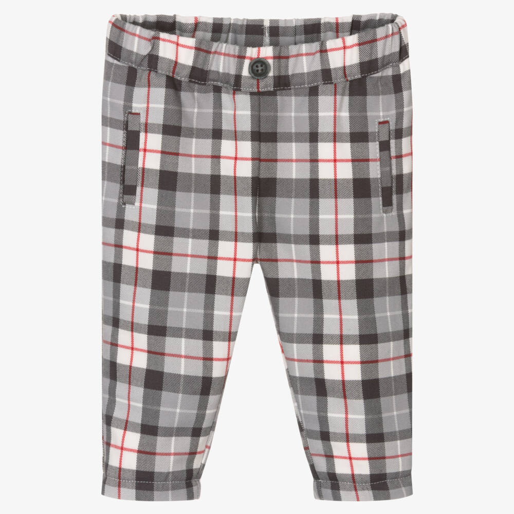 Baby Boys Grey & Red Check Trousers
