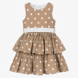 A gorgeous white dress for baby girls by iDO Mini, made in soft organza and floral embroidered tulle. Lovely for a special occasion, it has cute puffed sleeves and a layered, full skirt with a structured hem for shape and a cotton lining for comfort. The waist is trimmed with a pretty flower appliqué and it fastens neatly on the back with a concealed zip.
