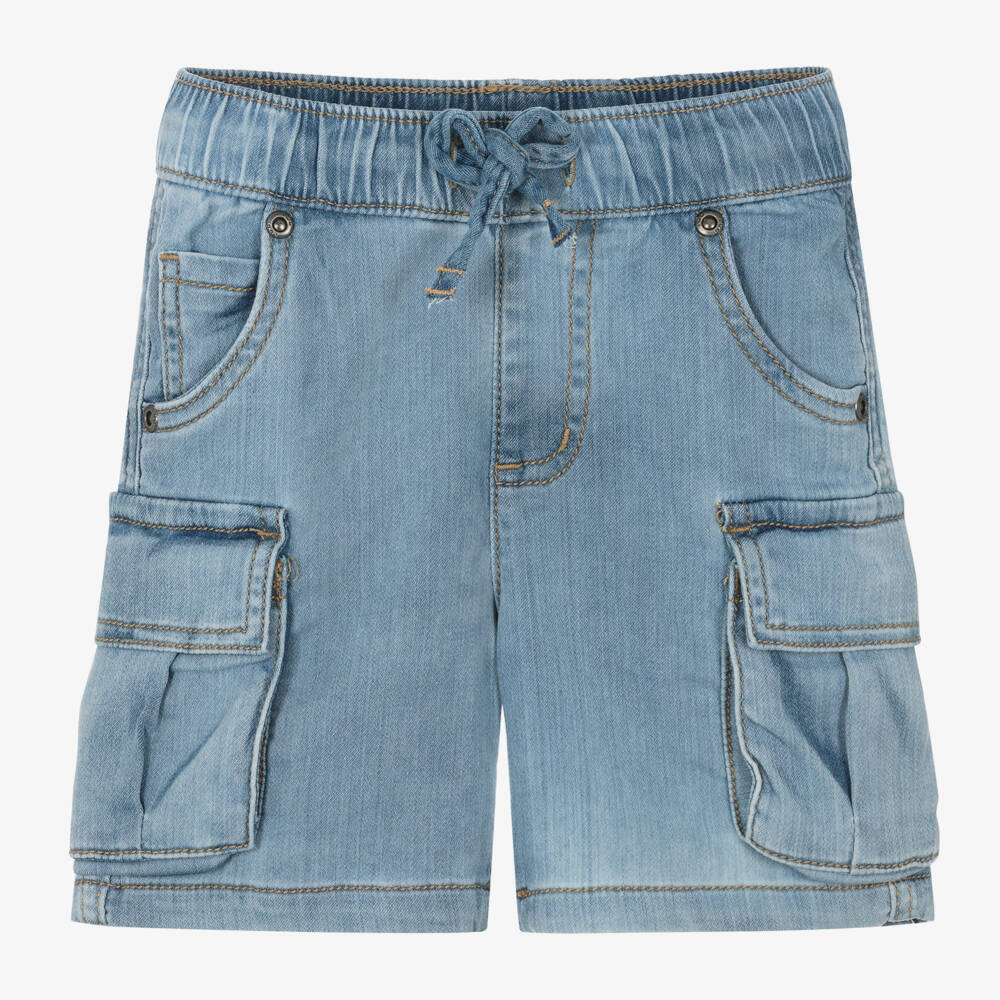 Mid-blue shorts for boys by iDO Baby, made in soft cotton jersey with added stretch. Designed for a regular fit, these casual shorts have cargo pockets on the legs and an easy drawstring waist. Branded rivets on the hip pockets and contrast stitching on the seams both help to create the look of denim.