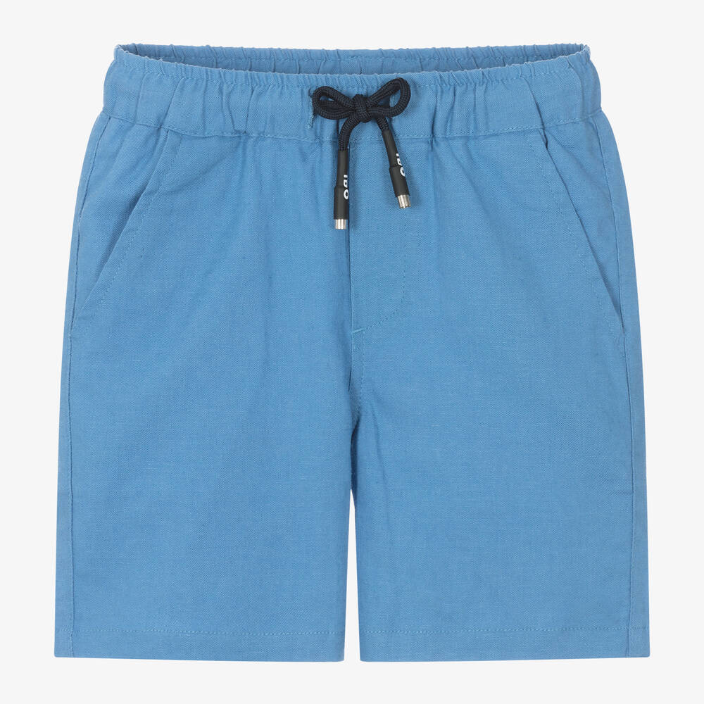 Blue shorts for boys by iDO Baby, woven in a lightweight linen and viscose blend with a gentle stretch. Easy to pull up, these regular fitting shorts have slanted hip pockets and an easy drawstring waist.