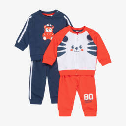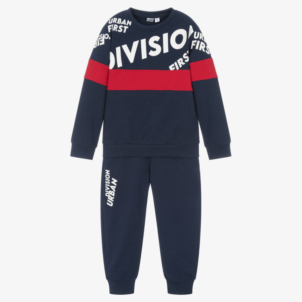 In navy blue and red, with cool urban-themed slogan prints, this tracksuit for boys is by iDO Baby. Comfortable for active or loungewear, it is made in soft cotton jersey. The joggers have drawstring ties for an ideal fit, with useful side seam pockets.