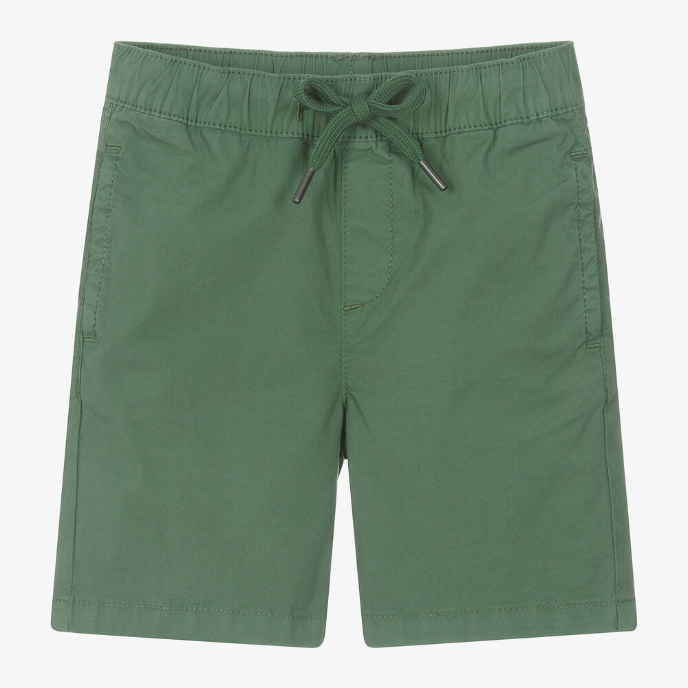 Green shorts for boys by iDO Baby, made from smooth cotton. Great for casual wear, they have discreet side seam pockets and a patch pocket on the back. Super comfortable and easy to style, they have an elasticated drawstring waist.