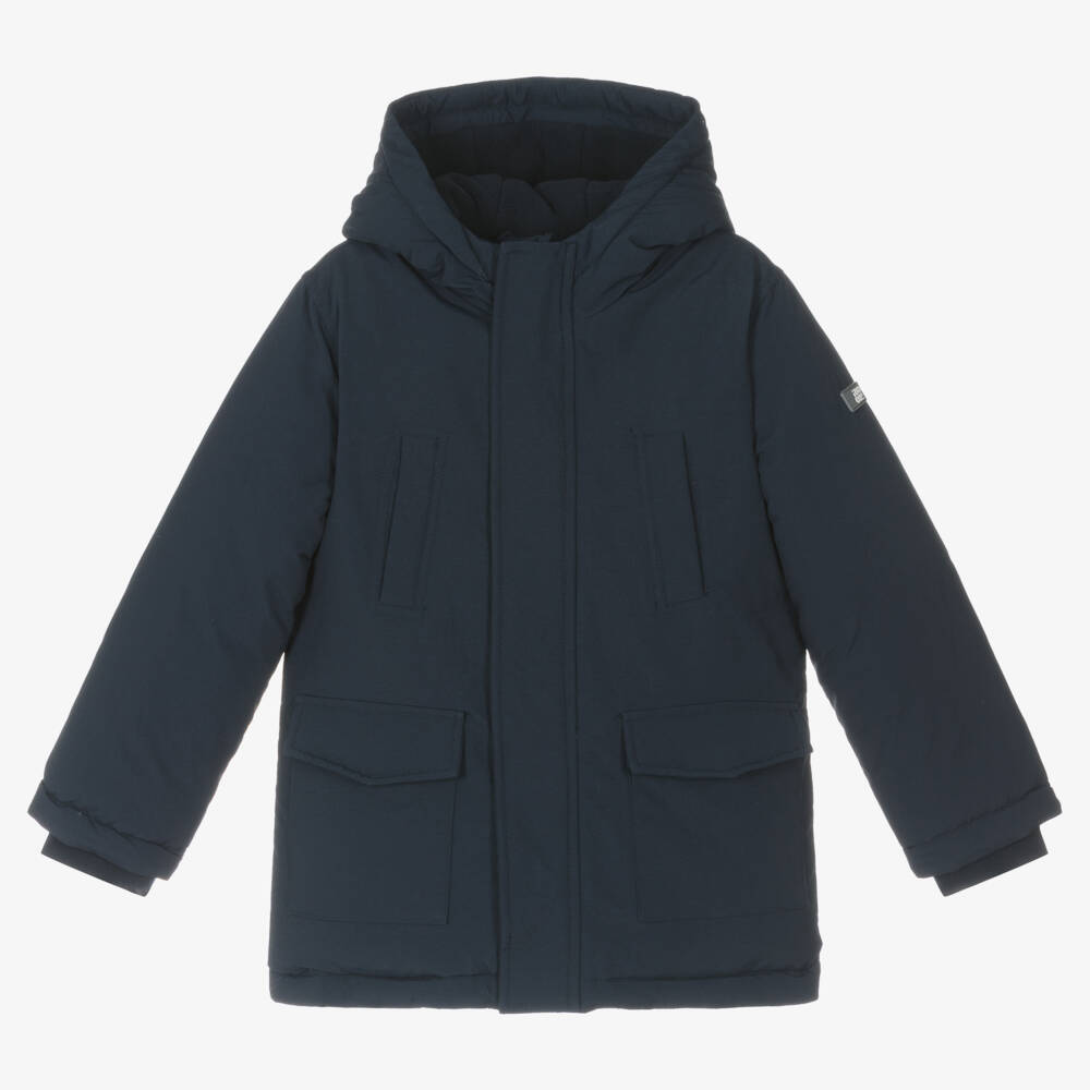 Boys Navy Blue Hooded Parka Coat