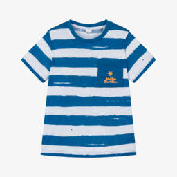 White short-sleeved T-shirt for boys by iDO, made in soft cotton jersey. In vibrant colours, this casual tee has a cool sausage dog and palm tree print on the front, with a fun 'globe trotter' slogan.