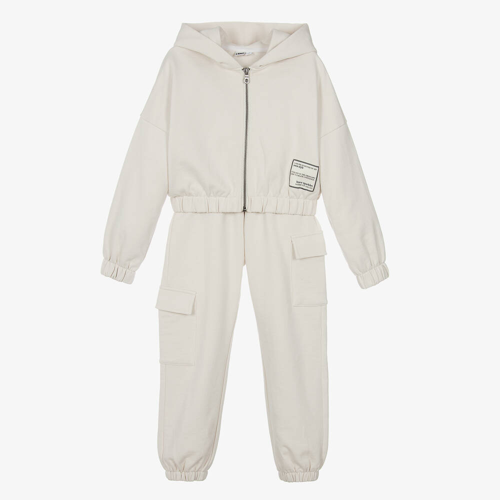 Girls Beige Cotton Cargo Tracksuit