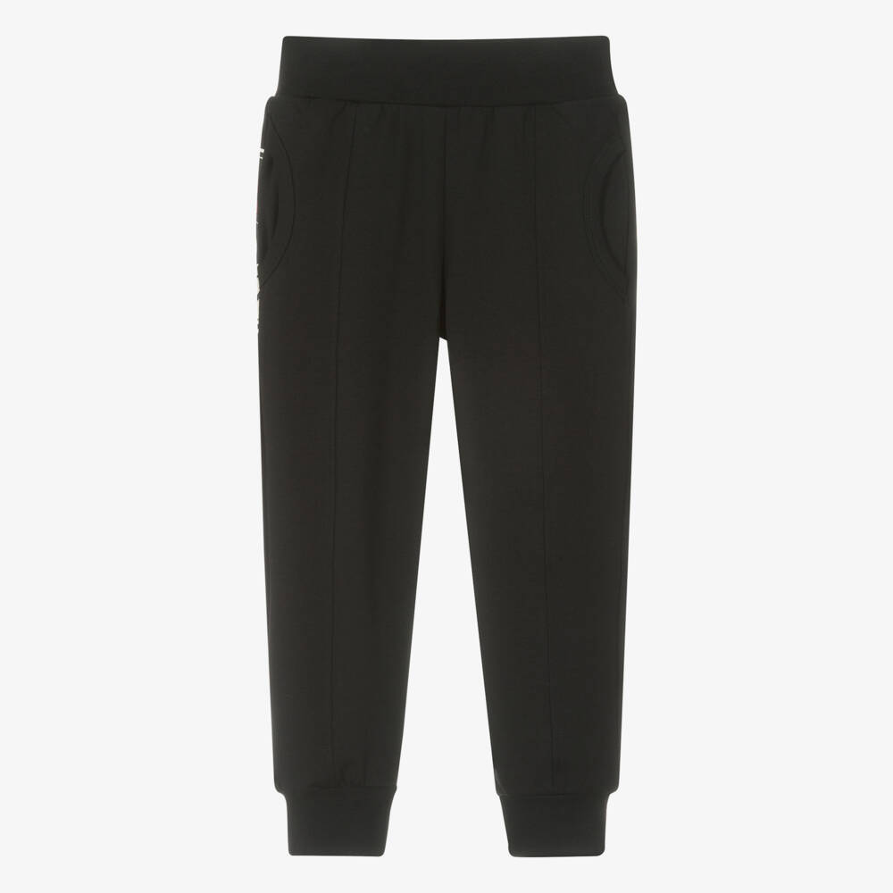 Black joggers for girls by iDO Baby, made from super soft cotton jersey. These fun trousers have a pretty glittery Minnie Mouse design on the back. A stretchy waistband and front pockets finish this casual look.