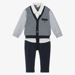 A stylish and elegant trouser set for older girls by iDO Junior, made in silky plissé fabric printed with fine gold dots for a subtle shimmer. The simple capped sleeve top has gathers on the shoulders and a shiny gold, keyhole button fastening on the back. The matching trousers have a wide leg silhouette, with an elasticated waistband and an attached sash tie fastening.