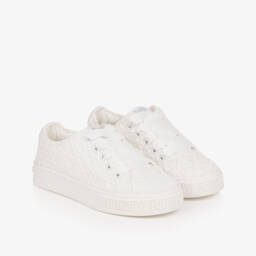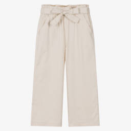 These delightful pale beige trousers for girls by iDO, are made in soft, lightweight poplin. They have a stylish paperbag waist, with a fixed bow belt on the front. The elasticated waist ensures a comfortable fit, ideal for smart-casual occasions.