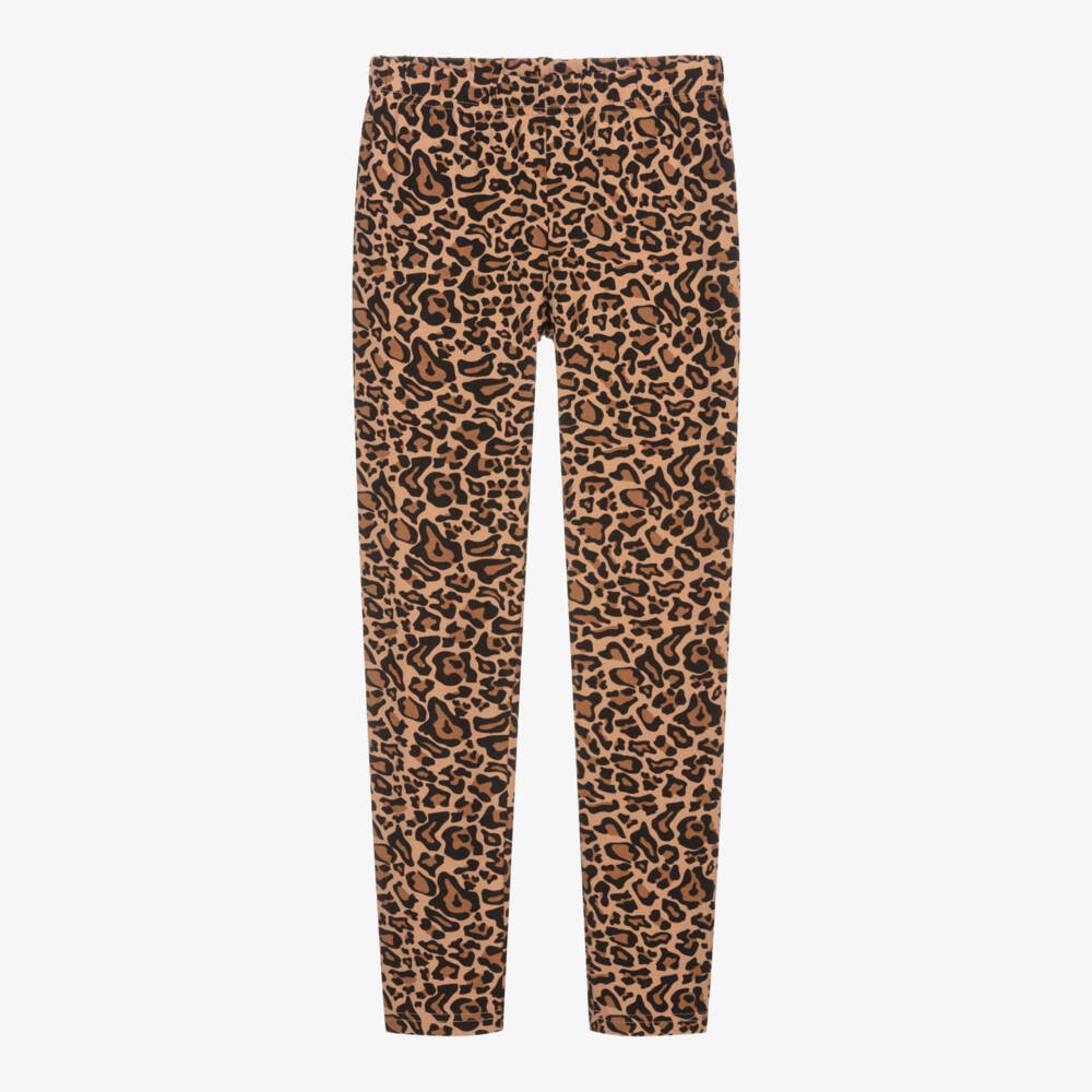Brown and black leopard print leggings for teen girls from iDo Junior, made with soft and stretchy cotton jersey. Full length, these leggings are cool and casual to wear with an elasticated waistband.