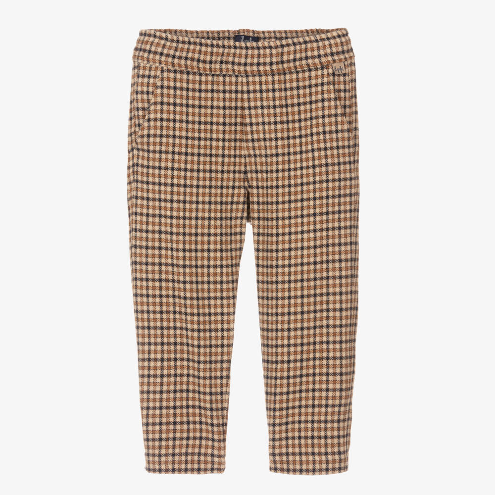 Boys Beige Check Cotton Flannel Trousers