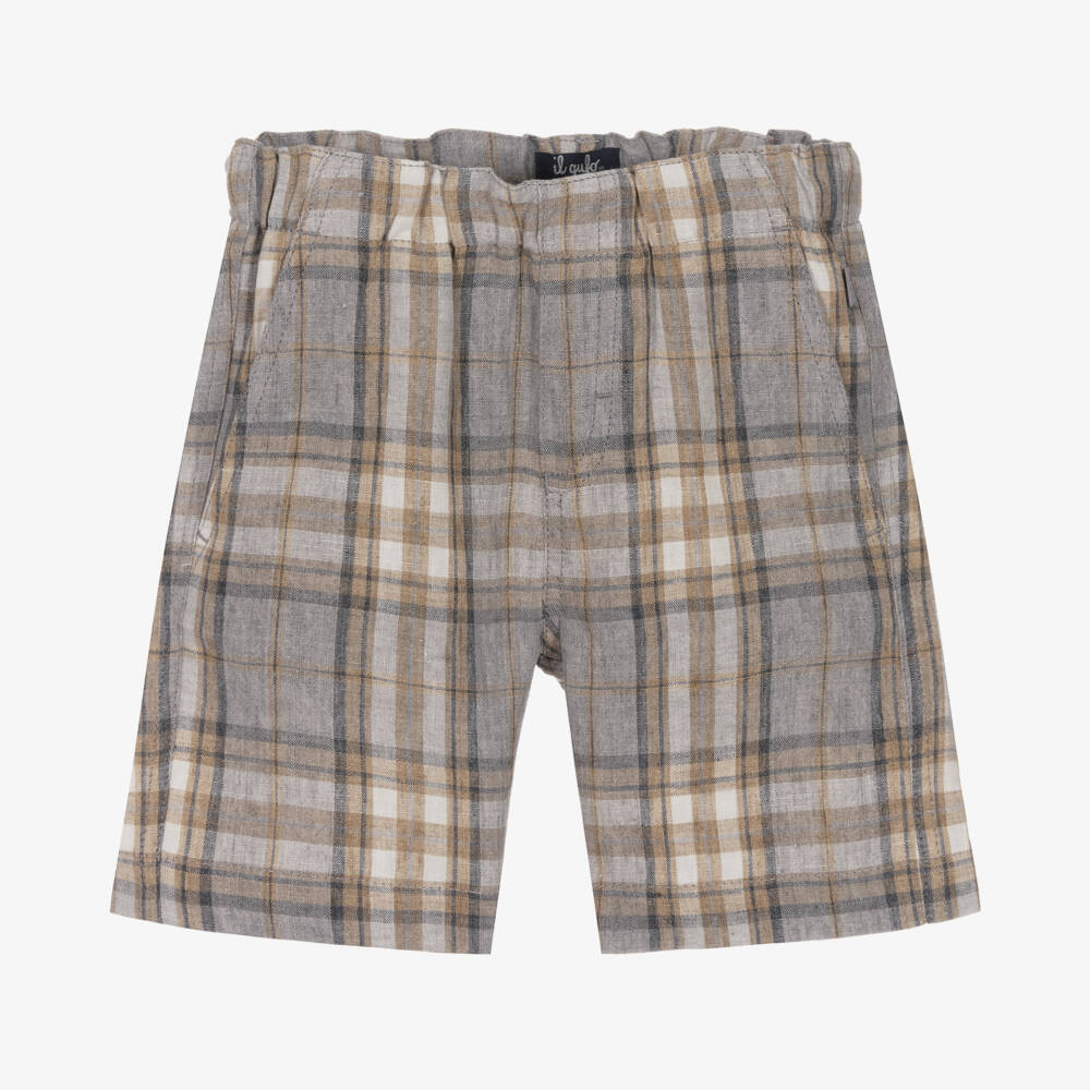 Boys Beige & Grey Check Linen Shorts