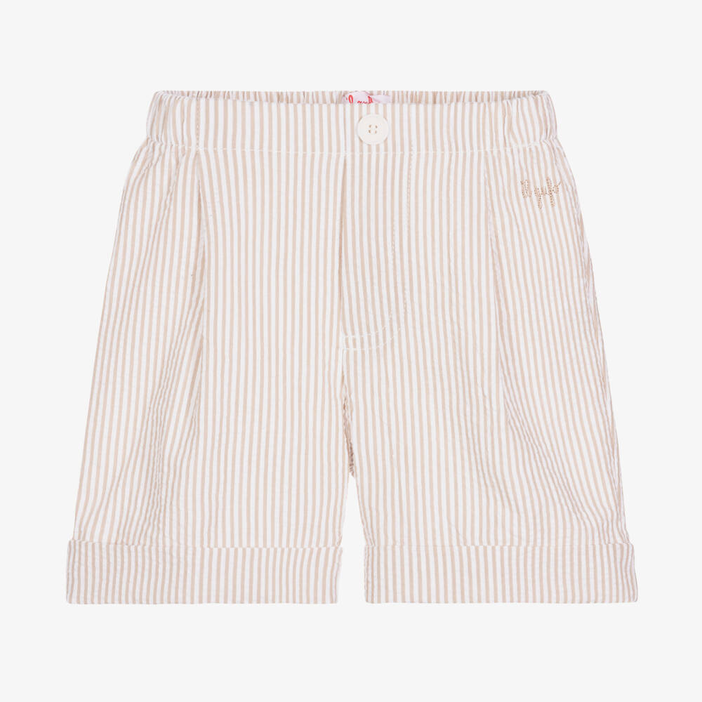 Boys Beige & White Striped Cotton Shorts