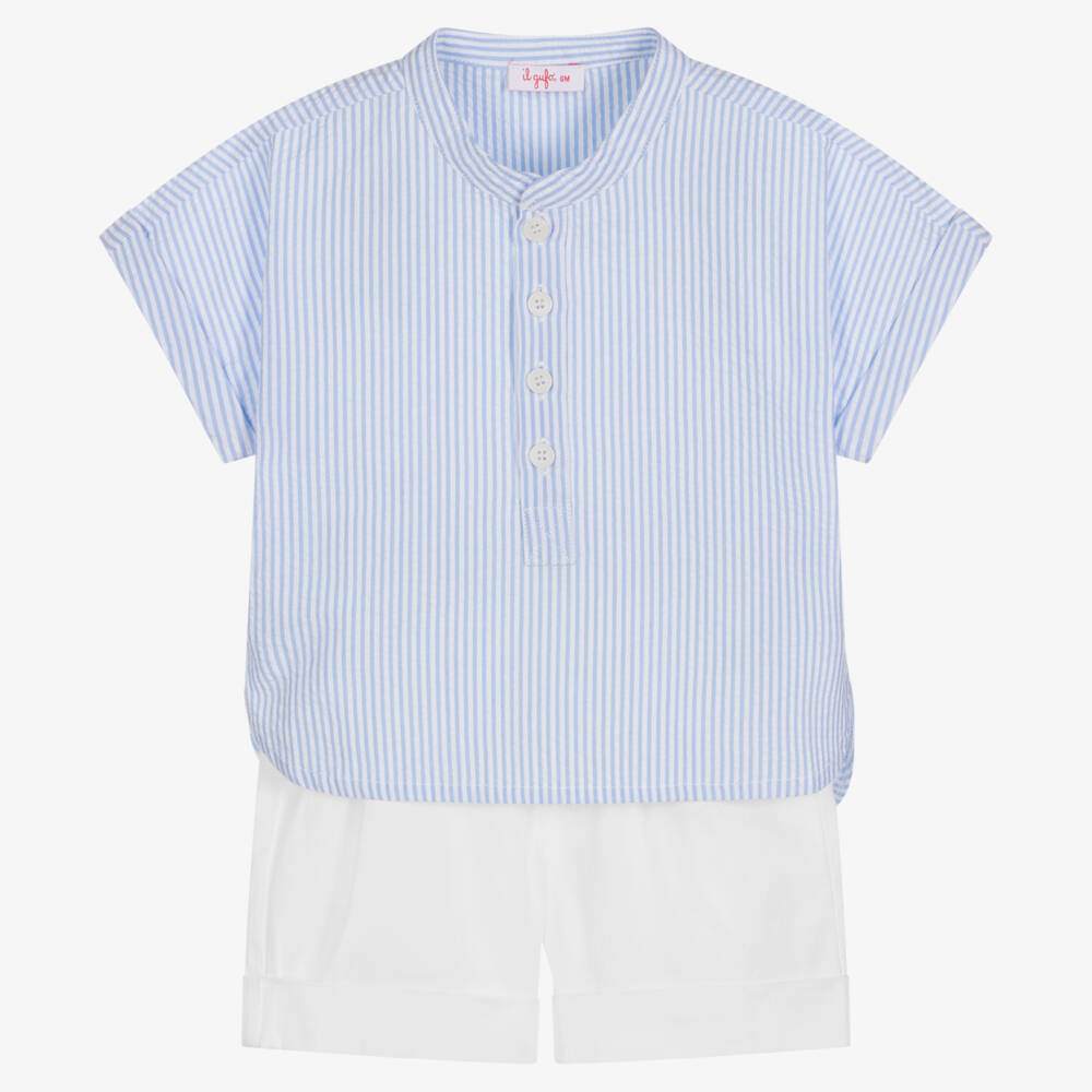 Boys Blue & Ivory Striped Shorts Set