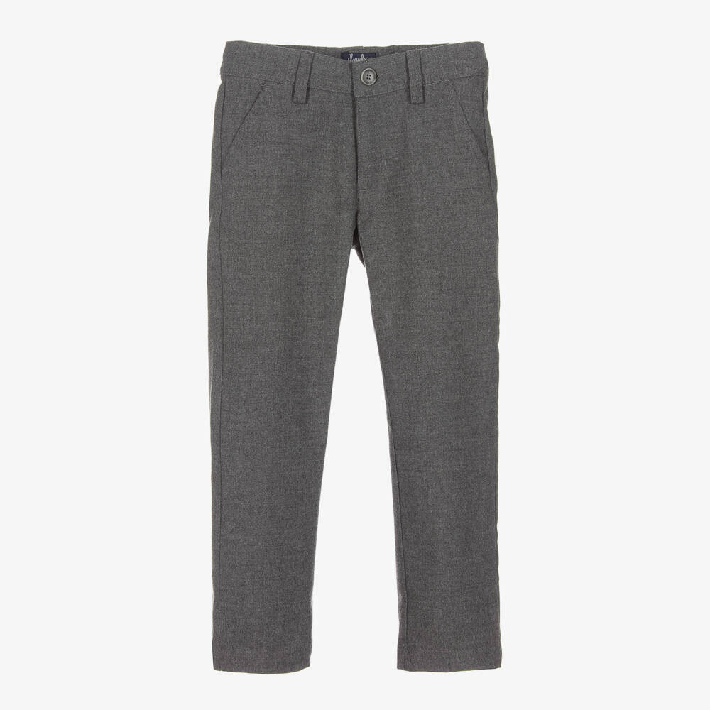 Classic dark grey trousers for boys by luxury Italian brand Il Gufo, made in a soft brushed fabric. Offering a smart tailored look, these trousers have side seam pockets and fasten neatly with a button and zip. There is a single button-up pocket on the back and an adjustable waistband.