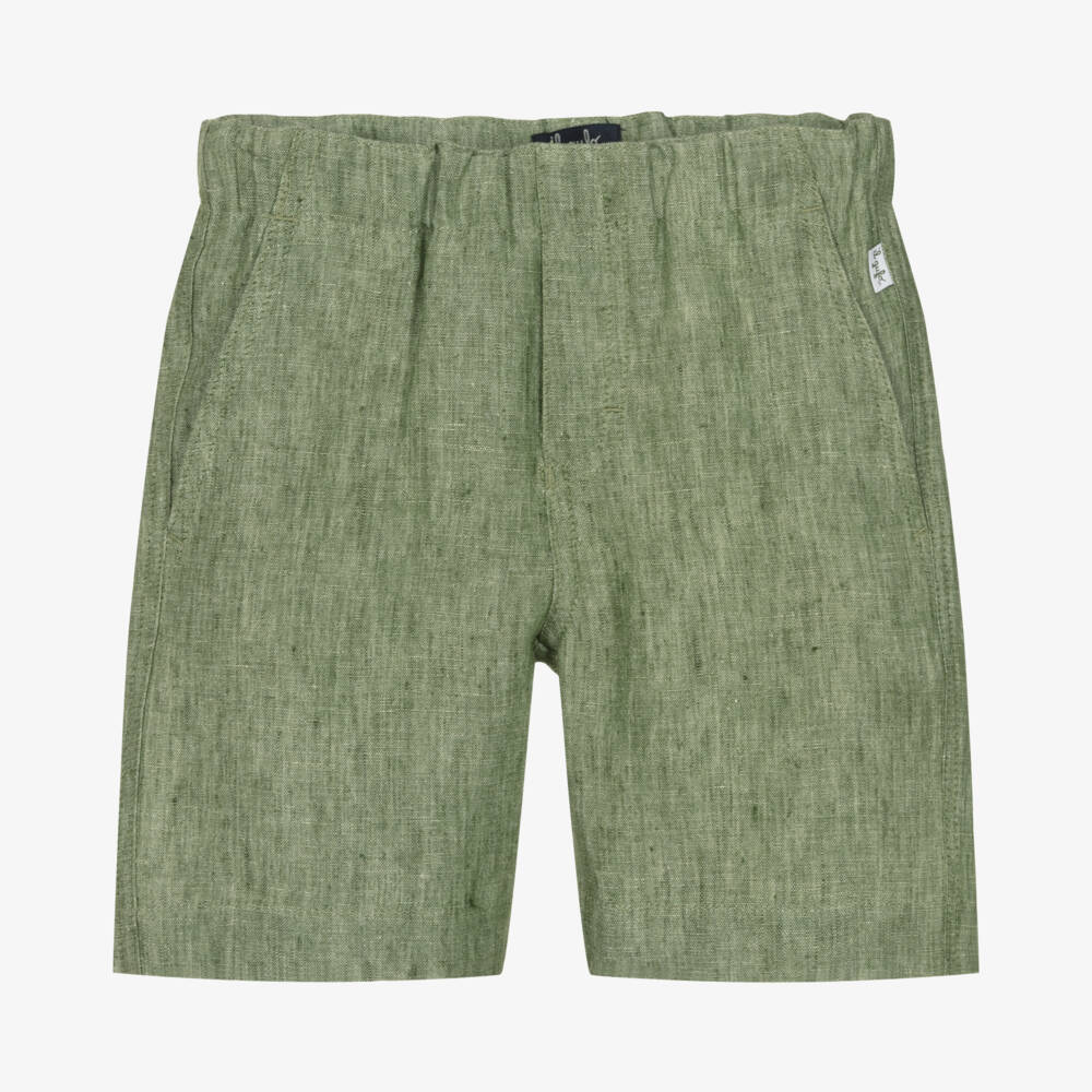 Smart-casual green marl shorts for boys by luxury Italian designer Il Gufo, with slanted front pockets. Ideal for warm days, they are made in cool linen with a comfortable, drawstring waistband. Easy to wear, they simply pull up.