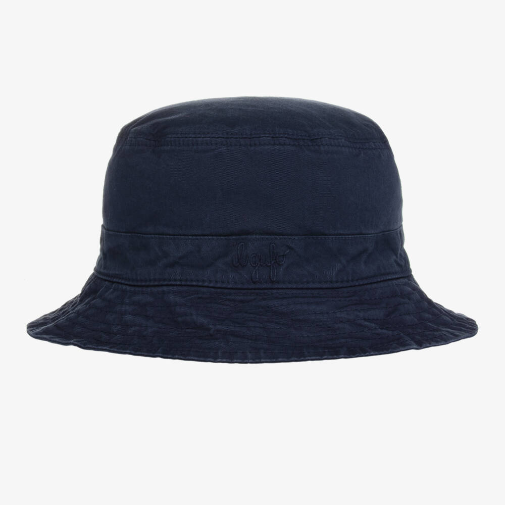 Navy blue bucket hat for boys by Italian brand Il Gufo. Made in soft and lightweight cotton twill for comfort, it is finished with a washed look and a tonal logo embroidery on the front.