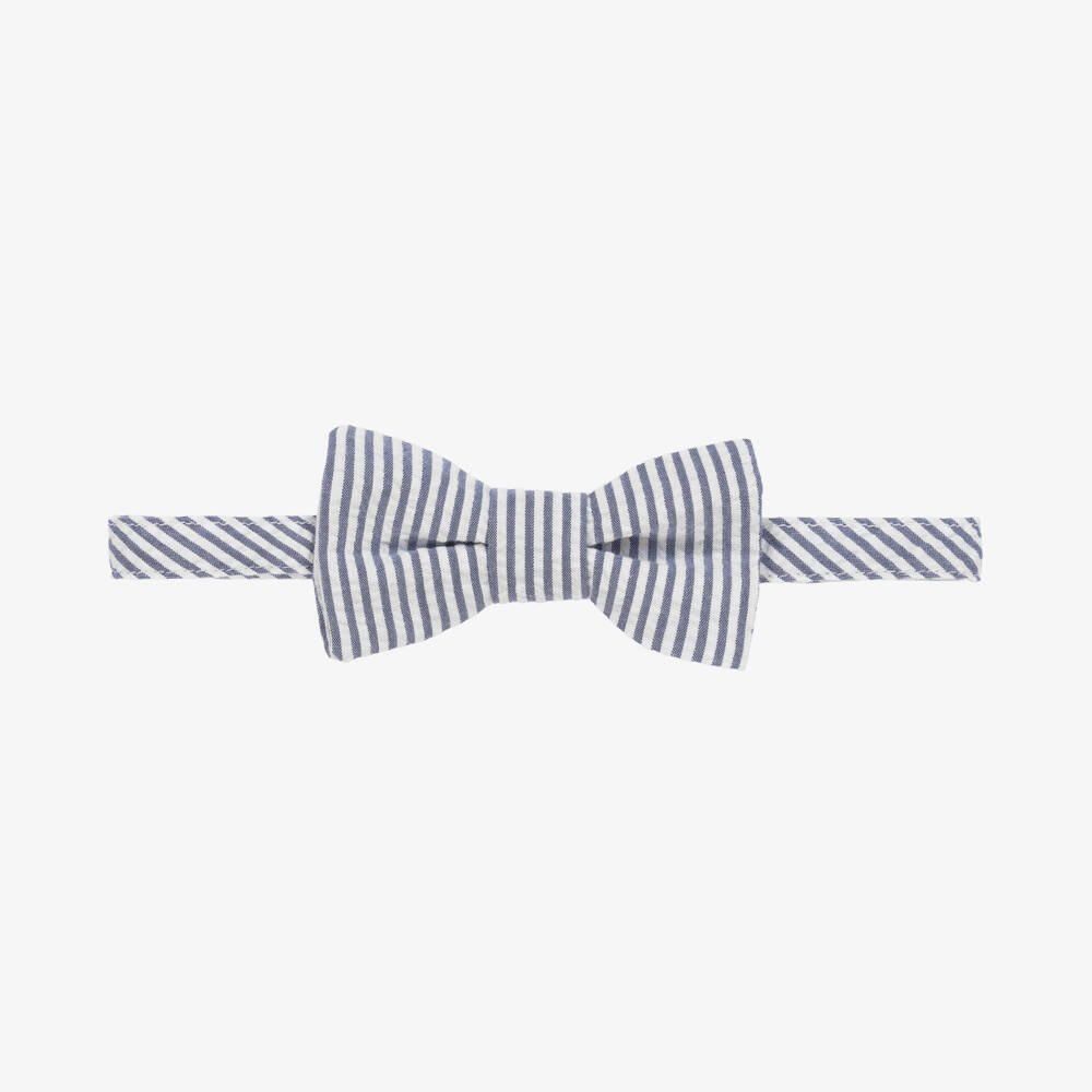 Boys Navy Blue Striped Cotton Bow Tie