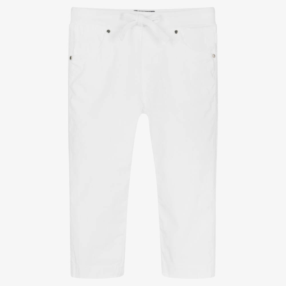 Boys White Cotton Drawstring Trousers