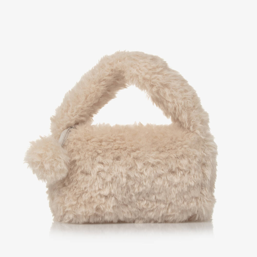 Girls Beige Faux Fur Handbag (21cm)