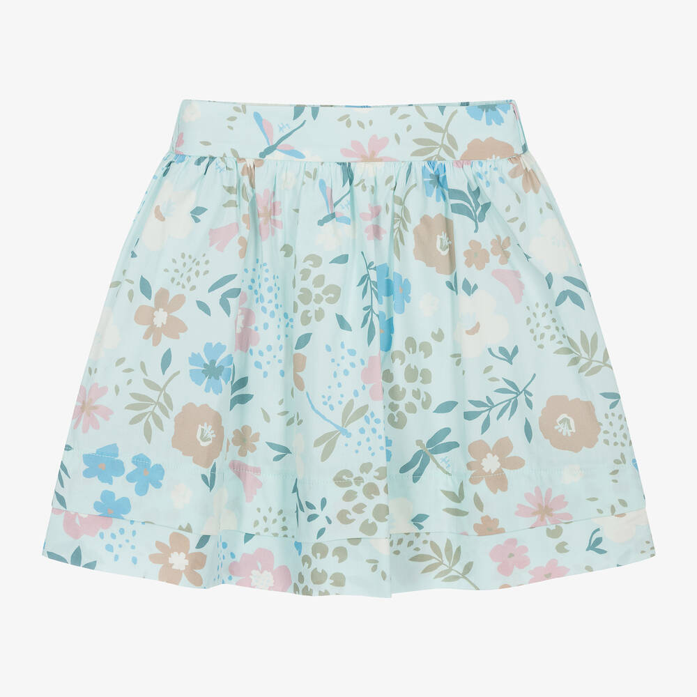 Girls Blue Floral Cotton Skirt