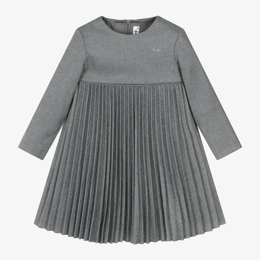 Girls Grey Pleated Dress