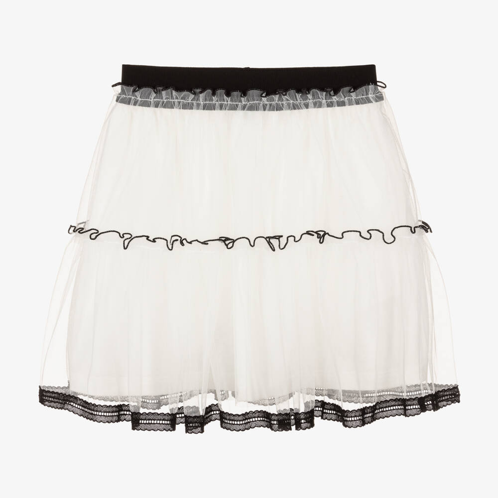 Girls Ivory & Black Tulle Skirt
