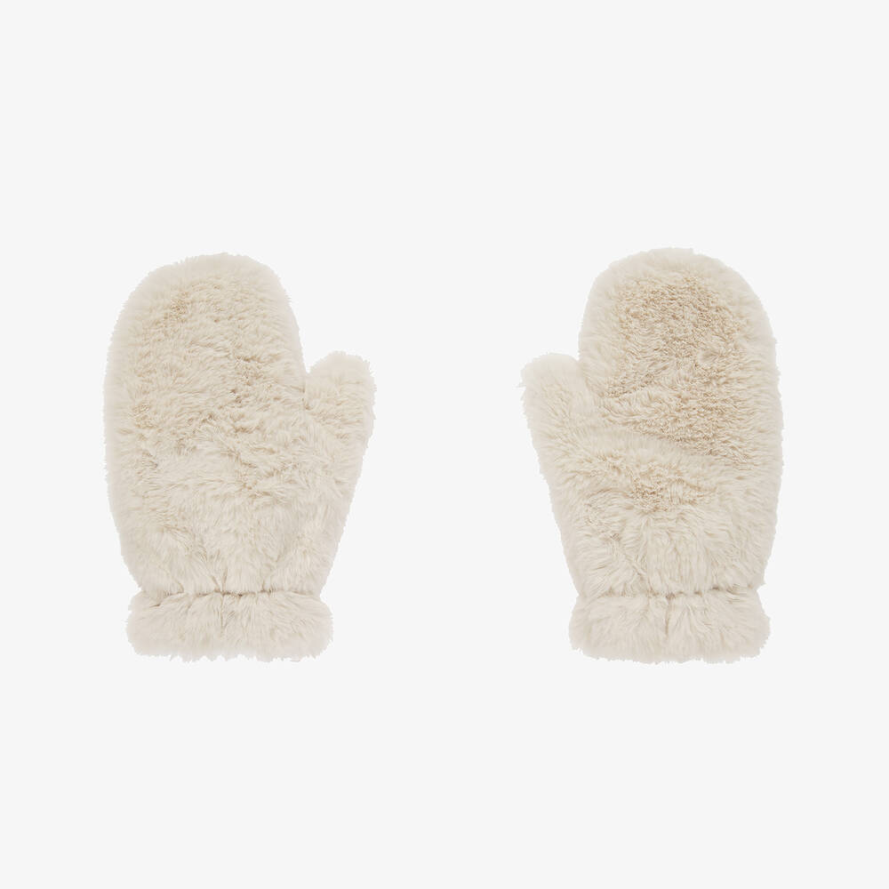 Girls Ivory Faux Fur Mittens
