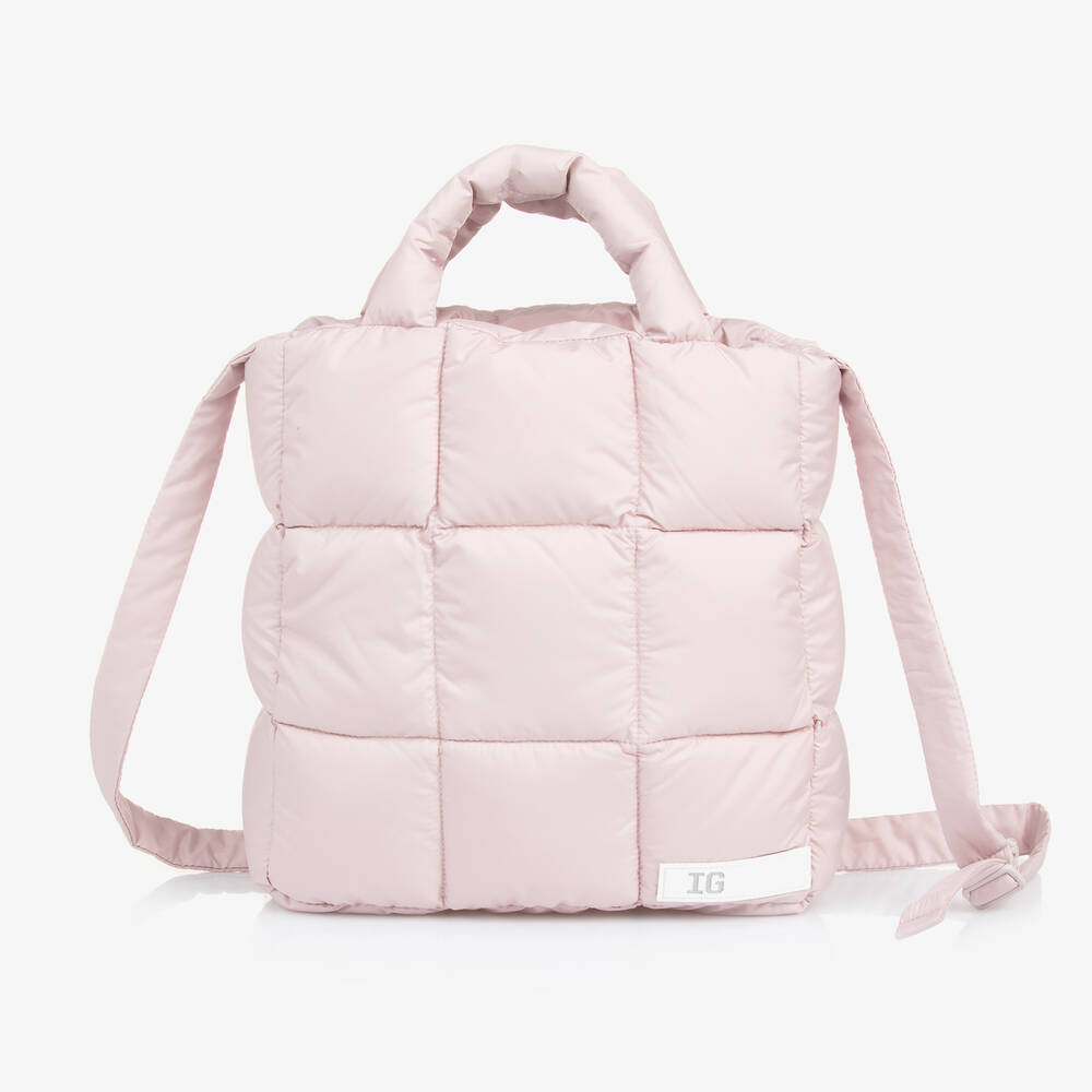 A lovely, pink quilted bag for girls by luxury Italian brand Il Gufo. Silky smooth and softly padded in luxurious down, this spacious bag has a white logo patch on the front and a small carry handle on the top. The length of the shoulder strap can be easily adjusted allowing it to be carried comfortably on the shoulder.