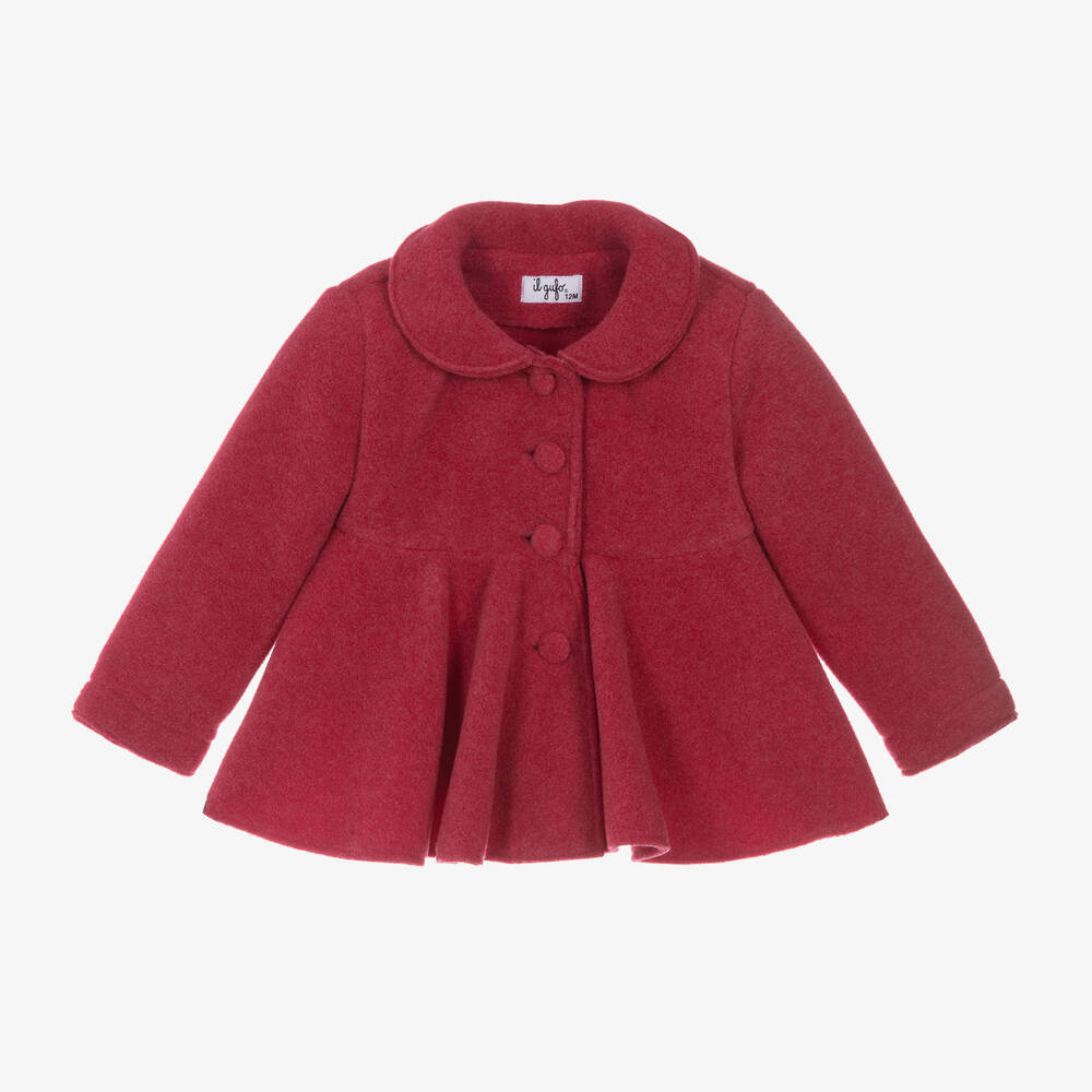 In a lovely dark pink shade, this beautiful jacket for girls is by luxury Italian brand, Il Gufo. Super soft and cosy, it is made in comfortable, viscose-blend fleece. It has a stylish, classic look, with a rounded collar, peplum hem and covered button fastenings.