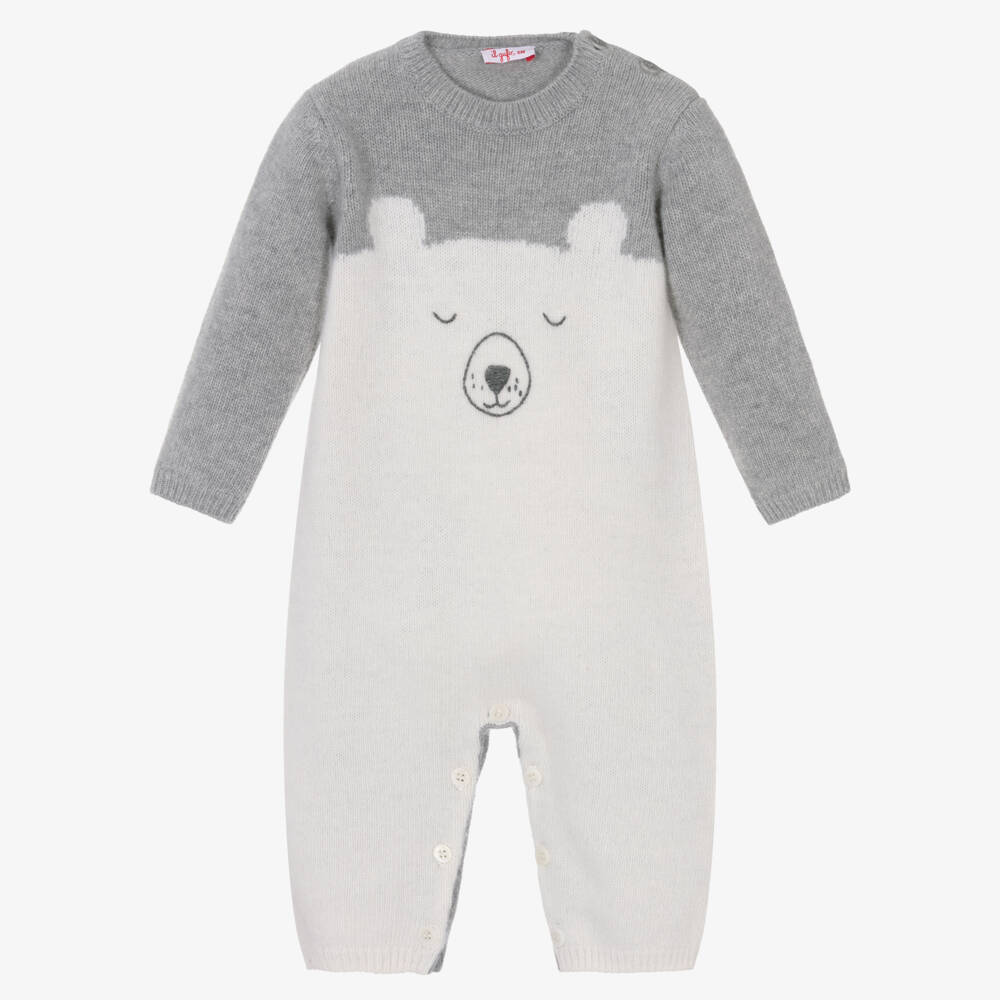 Ivory & Grey Bear Wool Knit Baby Romper