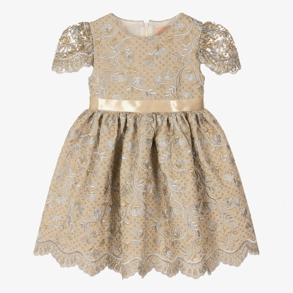 Girls Gold Brocade Dress