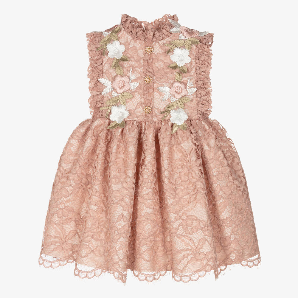 Girls Pink Floral Lace Dress