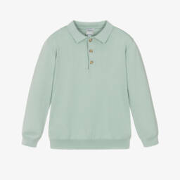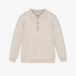 Navy blue long-sleeved sweater for boys by J&Josh, finely knitted for a soft, comfortable feel. With a classic collar and button fastenings, this polo-style top is ideal for layering on cooler days.