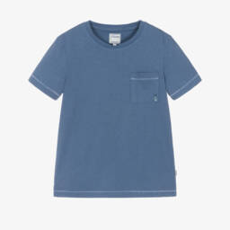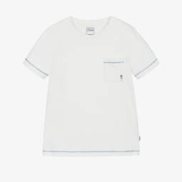 Yellow T-shirt for boys by J&Josh, made in a soft cotton and linen blend jersey. This casual tee has contrast beige overstitching and a small chest pocket with cross-stitch detailing.