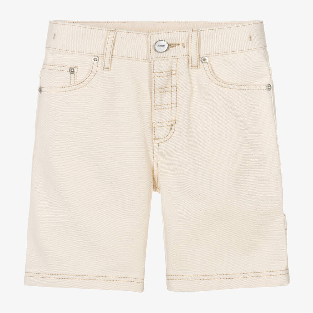 Casual yet stylish, these ivory denim shorts for boys are by French brand, Jacquemus Enfant. Made in mid-weight cotton twill, they have a classic look, with multiple pockets, rivets and a loop detail on one side. The waistband is adjustable for a comfortable fit and the shorts fasten with a zip and branded button. Completing the look with a branded touch, there is a logo jacron on the back.